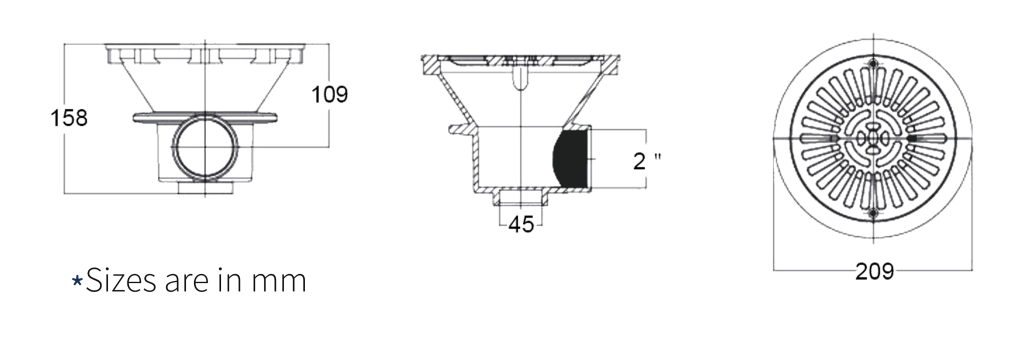 | PF-2010C | Main drain with Ø 209 for Concrete pool, G2 threaded (60.2mm) | 217 |