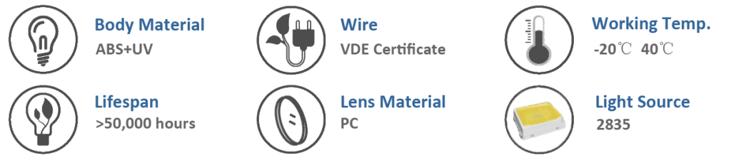 - Transparent PC Body with New Optical lens achieving higher luminance.