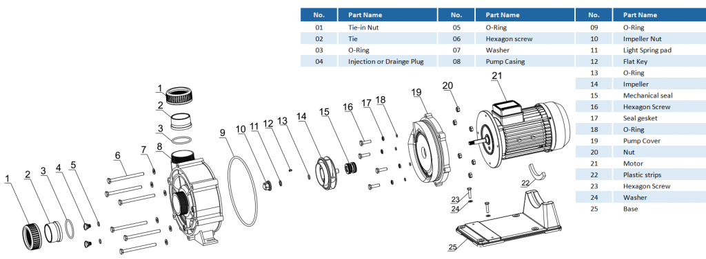 • La separación completa del cuerpo hidráulico y el motor garantiza la fiabilidad y una larga vida de la bomba