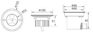 | Hidro-G100H | Stainless Steel In-Groud Light w/plastic niche, 3×1W High Power LED | 3W/12V | 225 | 108 |