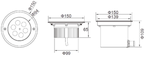 | Hidro-G150H | Stainless Steel In-Groud Light w/plastic niche, 6×1W High Power LED | 6W/12V | 450 | 216 |